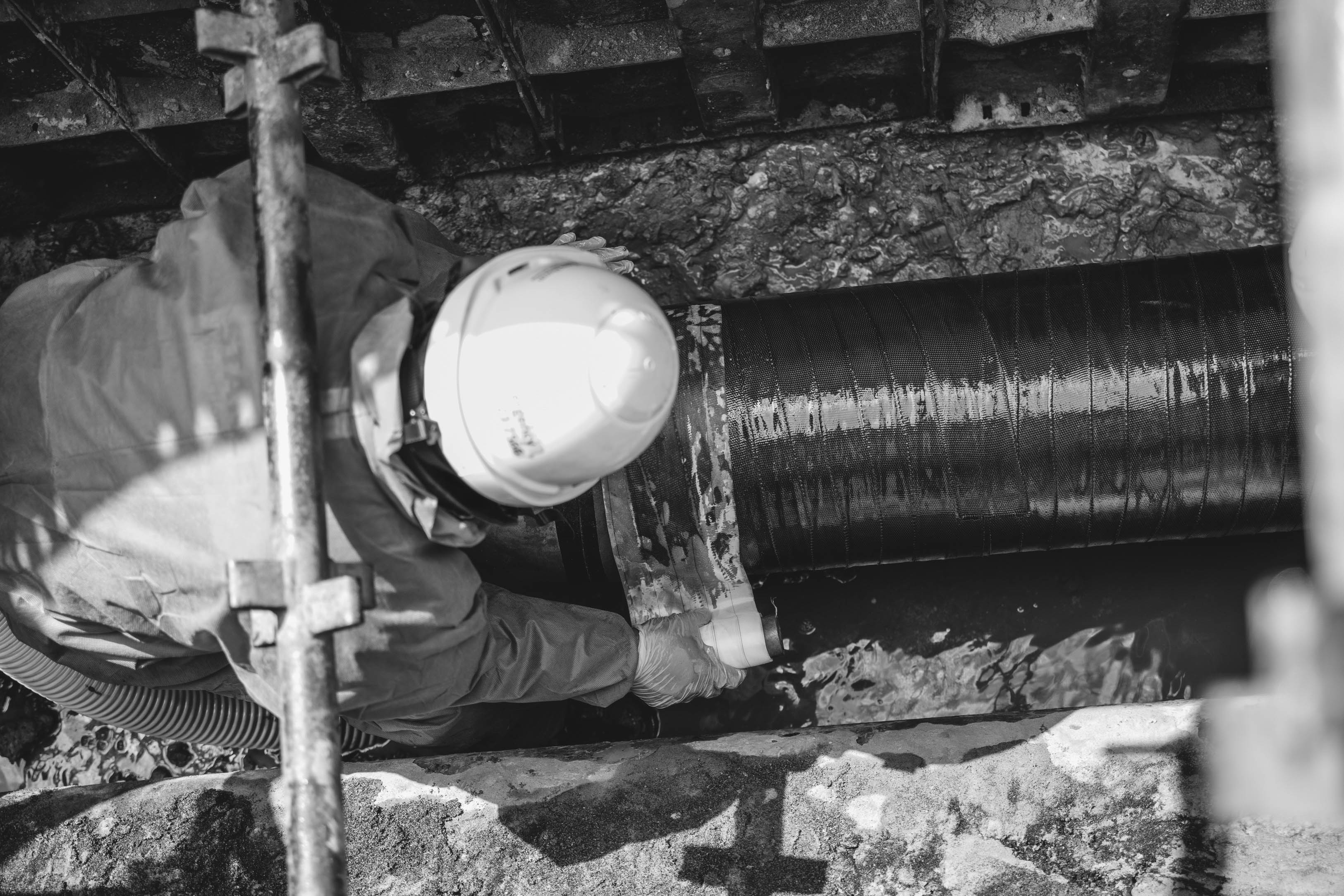 Our composite systems are engineered to operate in working temperatures from -50˚C to 232˚C and bares minimal pressure limitations. Our composite systems can be applied by hand lamination or by infusion methods and may be applied to live piping systems without shutting down for the repair. Our solution may be applied to any pipe size, most subrates and almost any piping configuration including tanks, vessels, flanges and other compromised structural assets.